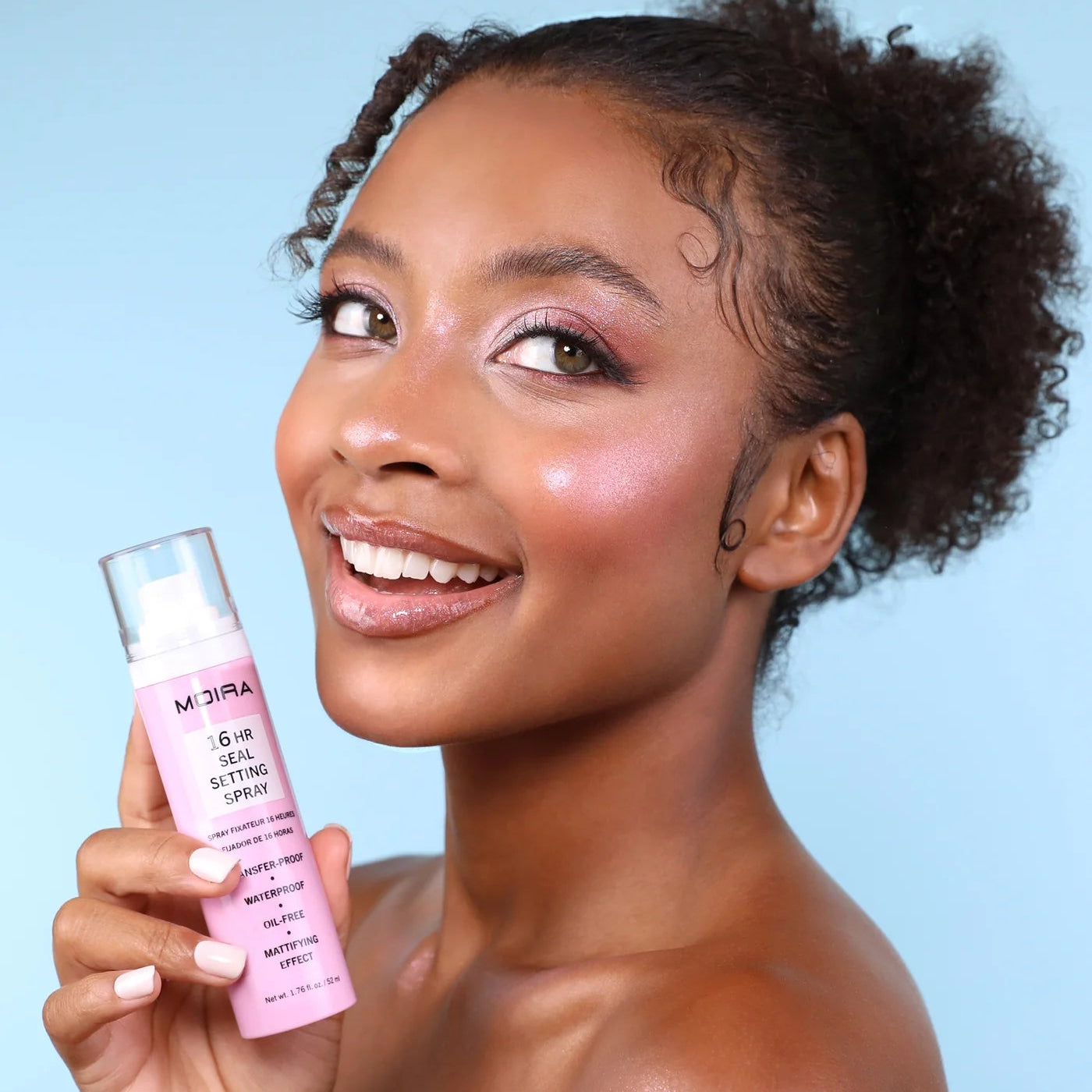 El Spray Fijador MOIRA 16HR Seal es una bruma ligera y microfina que matifica al instante y fija el maquillaje hasta por 16 horas. Formulado con una capa invisible sin aceite, controla el brillo sin resecar la piel.