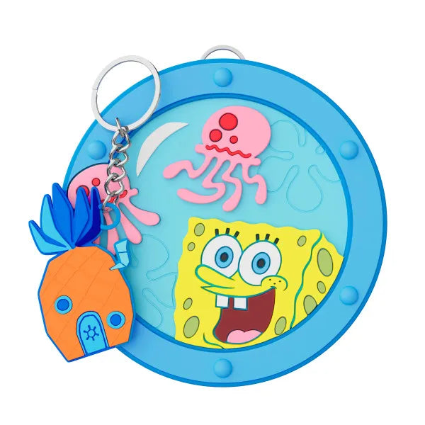 Sumérgete en Fondo de Bikini con el set de espejo y llavero "Always Looking Up". Este espejo compacto es perfecto para retoques en cualquier lugar e incluye un llavero acoplable inspirado en la casa de piña de Bob Esponja.