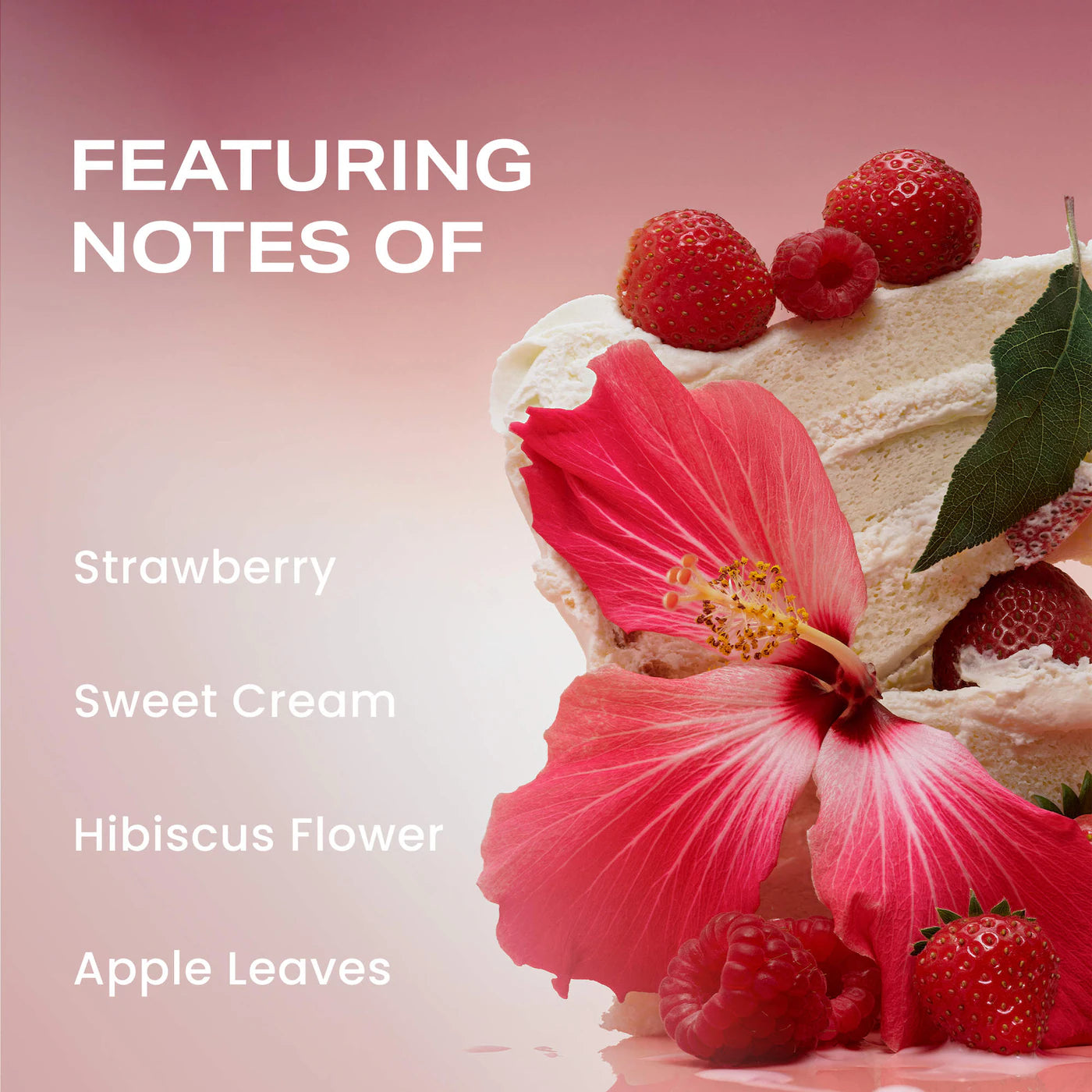 Las bayas brillantes y húmedas se suavizan con un corazón de leche de violeta y ámbar azucarado, mientras que la ambreta y la flor de hibisco añaden una profundidad intrigante. Es una fragancia alegre que perdura todo el día, como azúcar hilado derritiéndose en la lengua.