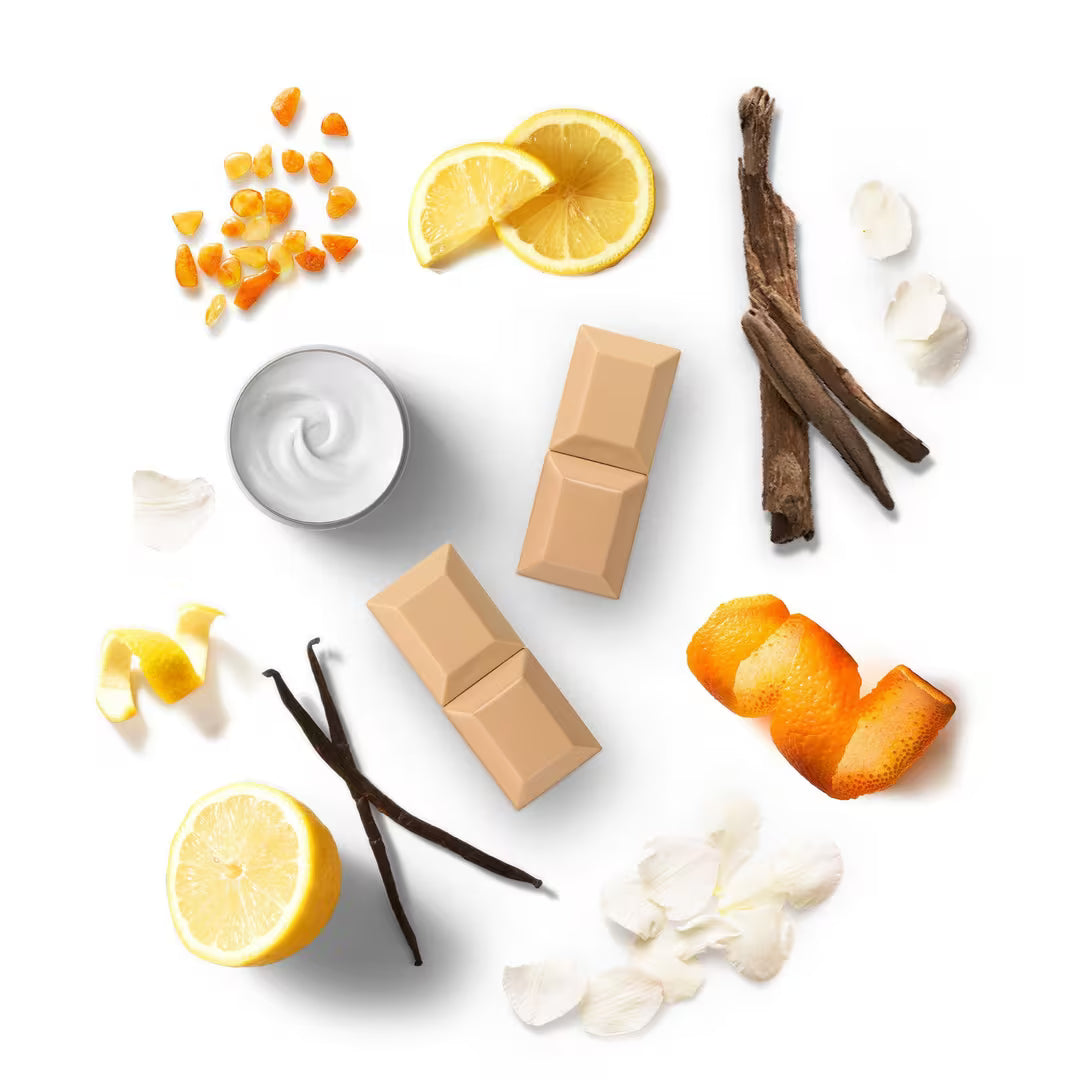 - Notas de salida: Limón azucarado, ralladura de naranja, leche de almendras, fresia;
