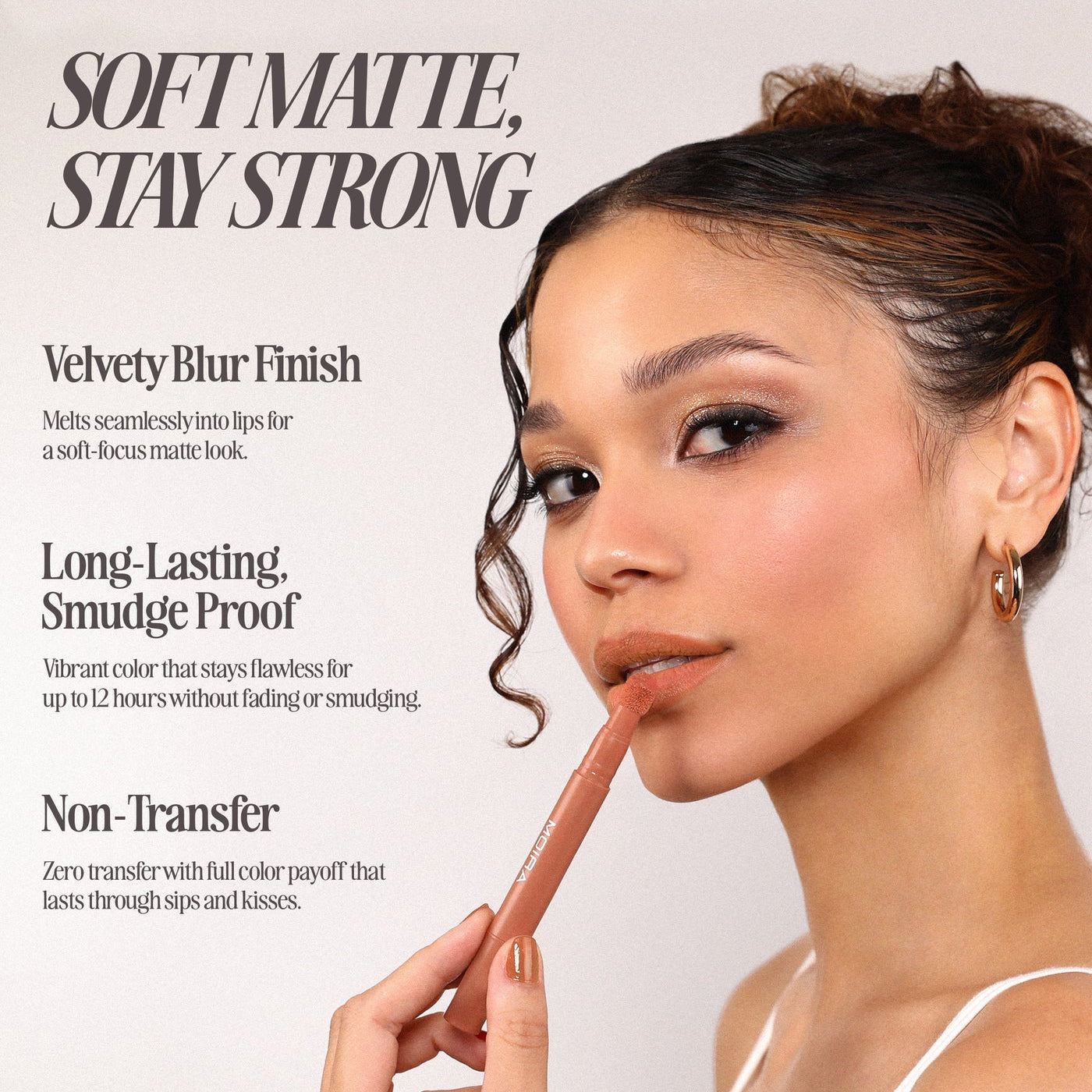 Cushion Kiss Lip Cream ofrece un acabado mate suave y una comodidad sin esfuerzo. Su versátil fórmula 2 en 1 se desliza con facilidad, fundiéndose con los labios para un look difuminado y aterciopelado que dura hasta 12 horas, sin correrse ni transferirse. Su textura cremosa y ligera se modula fácilmente, brindándote un color personalizable que se siente imperceptible.