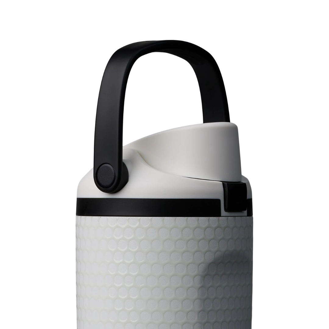 ¡Agárrenla y pruébenla, amigos! Esta botella tiene una textura clásica inspirada en una pelota de golf y un cómodo asa de cubo, ideal para el campo de golf. Además, con su triple aislamiento, mantendrá el agua (y la cabeza) frescas durante los últimos nueve hoyos.