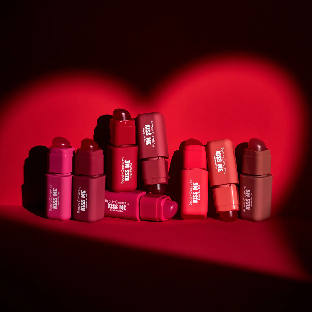 Descubre la obsesión labial definitiva. El set de tinte labial Kiss Me Liquid Gel incluye la gama completa de la nueva fórmula de tinte en gel, ¡8 tonos!