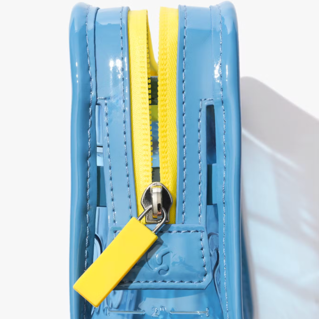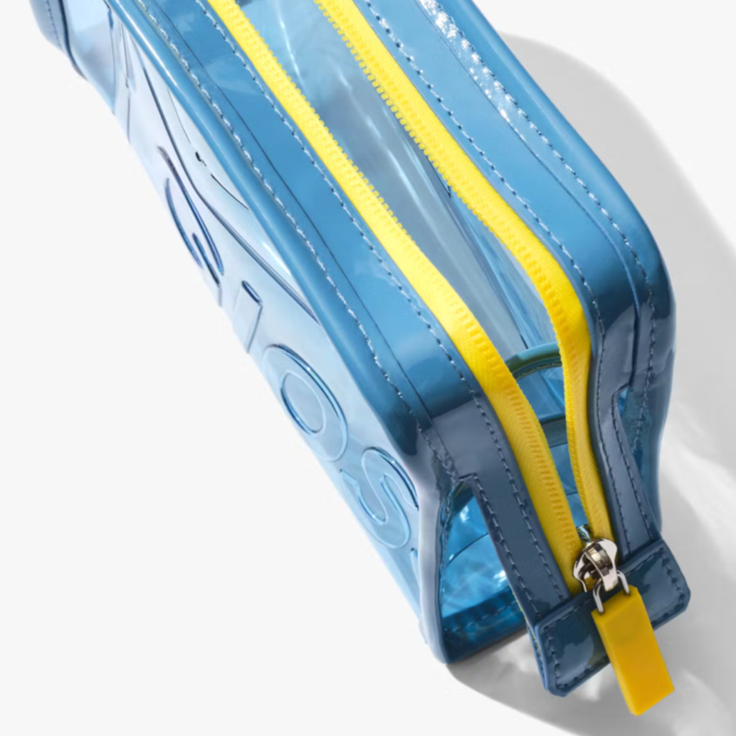 Ya no es necesario hurgar más en tu bolso de playa. Mantén a mano todos tus productos de maquillaje y cuidado de la piel favoritos con este mini neceser azul translúcido e impermeable. Perfecto para salidas a la playa, festivales de música o cualquier otra ocasión.