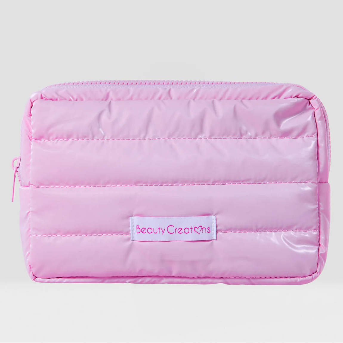 Mantén tus artículos esenciales organizados con la bolsa de cosméticos Puff de Beauty Creations en rosa suave. Esta bolsa compacta de una sola pieza presenta un diseño afelpado que combina estilo y funcionalidad.