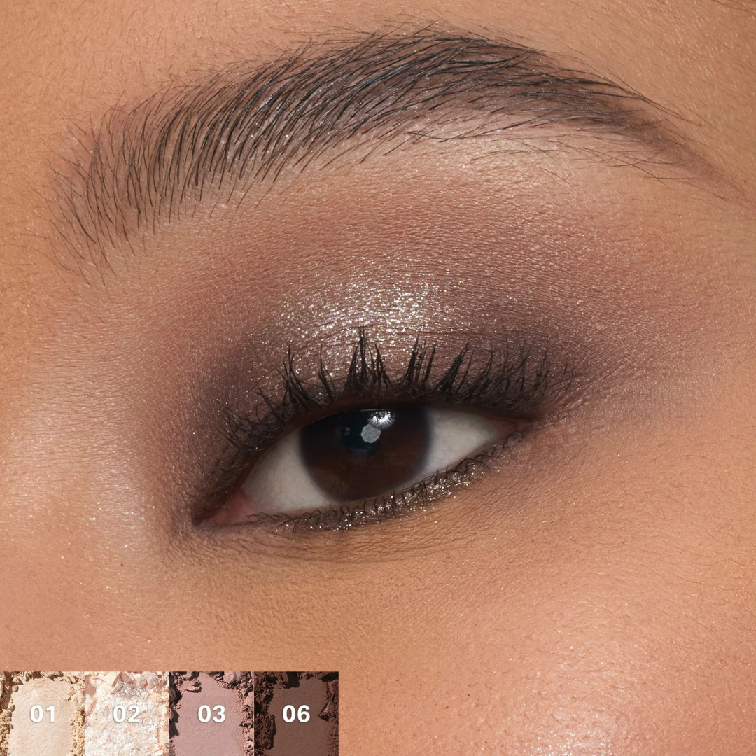 Apuesta por un futuro lleno de color con infinitas y compactas selecciones de tonos atemporales y de tendencia. Mates, brillantes y metálicos, suaves como la seda y fácilmente difuminables, crean dimensión para una expresión natural. Además, la sombra de ojos Molten Metal, con su fórmula flexible, se puede aplicar en seco para lograr efectos difuminados y luminosos, o en húmedo para un brillo detallado y fluido.
