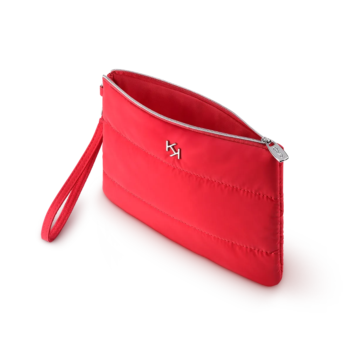 - PUFFER MAKEUP & ACCESSORY POUCH: Inspirada en el diseño icónico de las chaquetas acolchadas de montaña, esta bolsa de belleza con un encanto après-ski le dará a tu rutina un toque ultraestiloso. La tela roja con costuras tono sobre tono crea un irresistible efecto 3D, mientras que la cremallera plateada, la correa para la muñeca y el logotipo KK en relieve demuestran la autenticidad de este accesorio imprescindible.