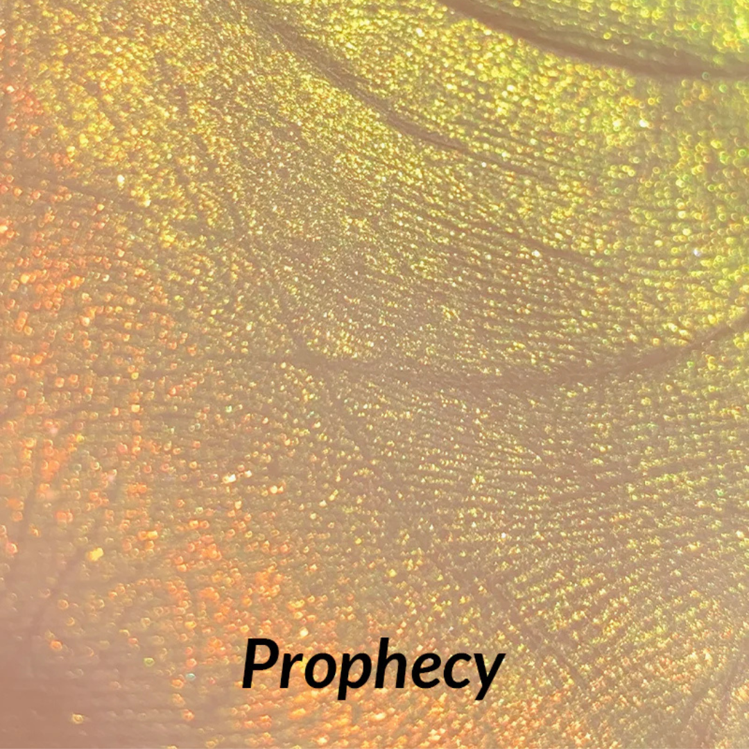 - Prophecy: Un iluminador champán multicolor con un toque sobrenatural de verde y fucsia. Destinado a la iluminación definitiva, este esmalte que cambia de color es el elegido que el universo ha estado esperando. Cumple la profecía y descubre un reino de resplandor al entrar en contacto con este tesoro místico.