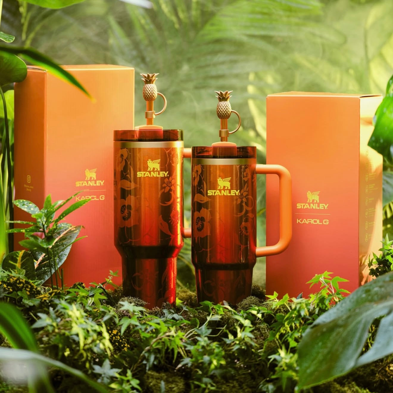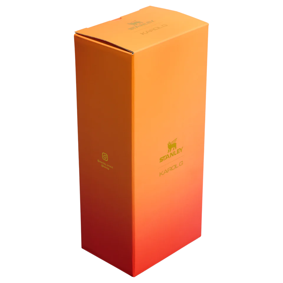 KAROL G no solo aparece, sino que se apodera de todo. La nueva colección Stanley 1913 x KAROL G llega con un elegante acabado dorado y un estampado de hibisco TROPICOQUETA.